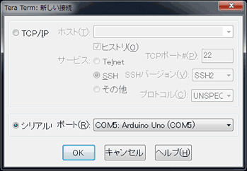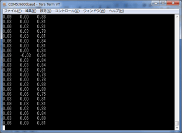 加速度データはTeraTermなどで出力させることができます(Arduino IDEでも出力を見ることは可能です)。ドライバがインストールされているPCにArduinoをUSB接続すると、シリアルポートの選択肢にArduinoが出てきます。