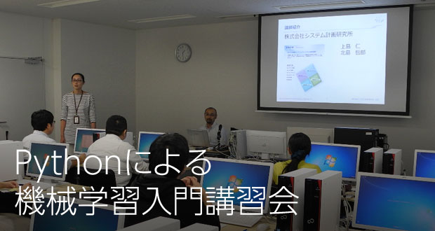 講演では 株式会社システム計画研究所著「Pythonによる機械学習入門」に基づいて機械学習を実践するための環境構築から、機械学習に関する様々な手法について実践的な解説を行いました。