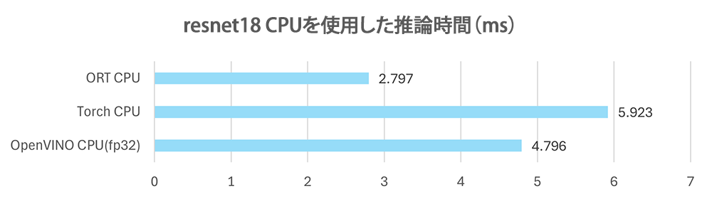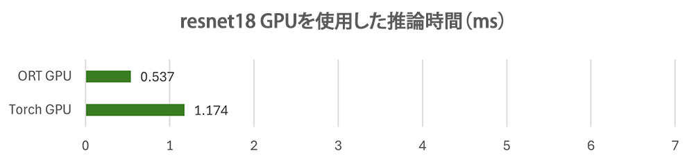 Torch GPUやORT GPUの結果を見てみると、GPUが一番速い結果となりました。
