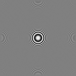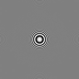 CZPは正弦(もしくは余弦)曲線を二次元表現したもので、画像の中心を原点とする同心円が幾重にも並び、中心から外側に向かって空間周波数が高くなっていき、ピッチが細かくなっていきます。