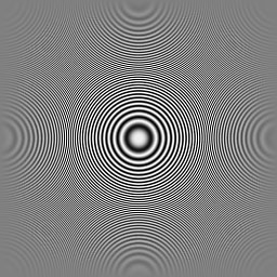 f(x,y) = 128sin(cxx²+cyy²)+128 (画像中心が原点)